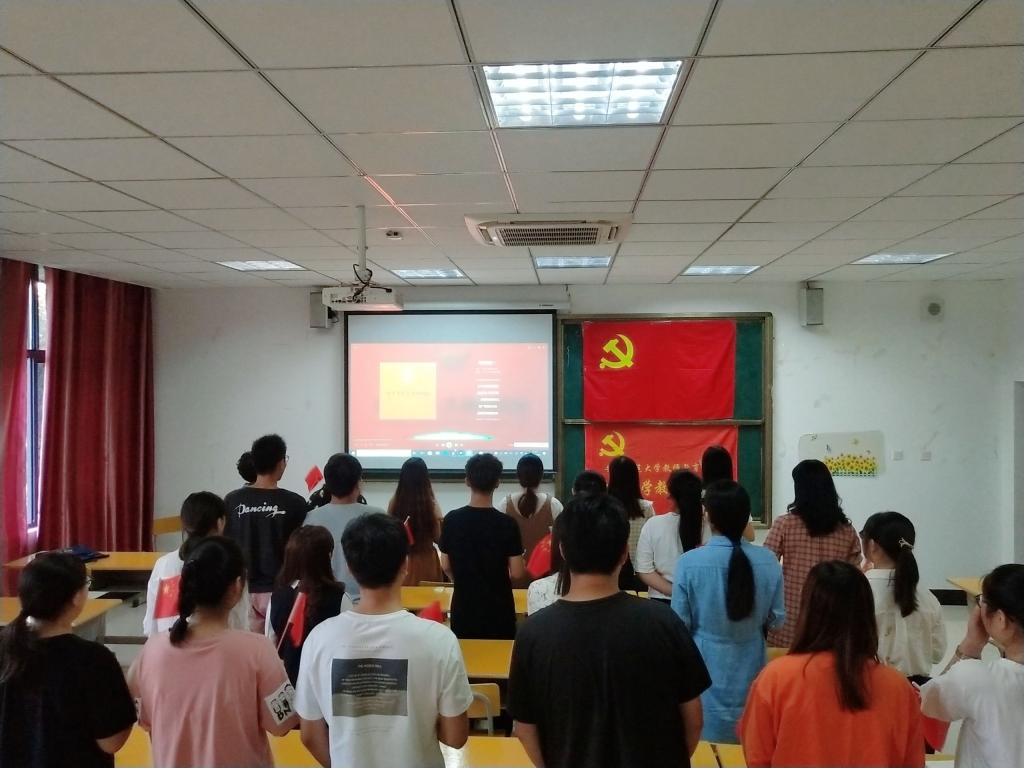 9月29日下午,学生小学教育党支部全体成员在支部书记后娇娇老师的组织及带领下于J219教室开展以“我和我的祖国”为主题的党日活动。红旗飘飘、歌声激昂,此次活动是为了在国庆这一重要节日来临之际庆祝新中国成立70华诞,激发大家的爱国情怀。