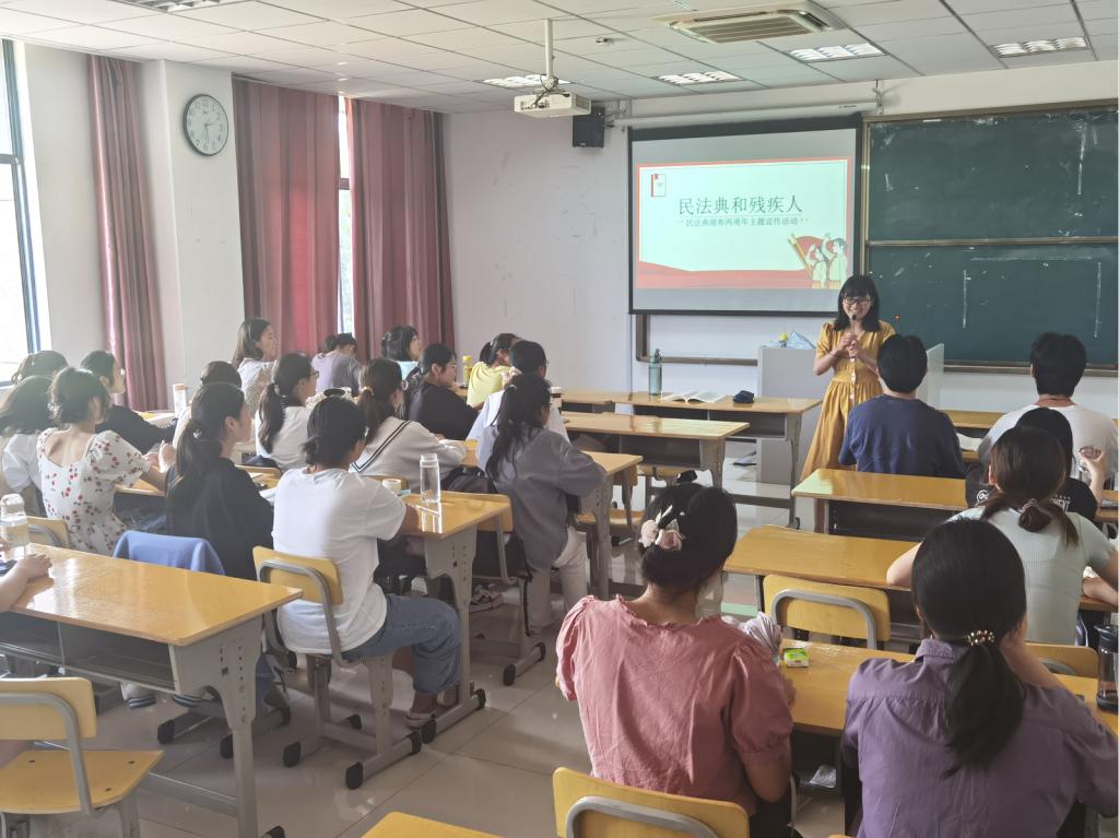 在《中华人民共和国民法典》颁布两周年之际,为在学生中开展“美好生活·民法典相伴”的普法宣传,并将民法典融入专业思政教学中,教工特殊教育教研室党支部组织开展“民法典和残疾人”的主题宣传活动。
