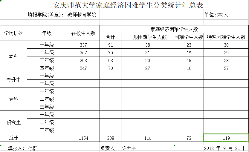 必赢bwin线路检测中心家庭经济困难学生分类统计汇总表