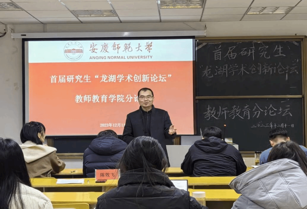 12月11日下午,首届研究生“龙湖学术创新论坛”教师教育分论坛在必赢bwin线路检测中心102教室顺利举行。会议由特殊教育专业的程靓淇同学主持,副院长陈效飞,赵子刚、彭文超、张峰峰等老师担任此次论坛点评专家,朱斌彬、宋欣老师及8位研究生参与此次汇报,学院部分研究生现场聆听。