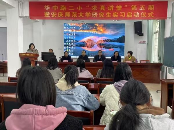3月13日下午,我院2022级小学教育、教育管理和教育学硕士研究生赴华中路第二小学实习,2020级小学教育三班本科生也赴该校开展研习。启动仪式在华中路第二小学行知楼一楼报告厅举行。必赢bwin线路检测中心副院长陈效飞、安庆师范大学张启树教授、安庆市教体局教研室副主任周泉、迎江区政府总督学胡跃进、安庆市迎江区小学语文教研主任江兴玲及华中路第二小学部分教师出席本次会议。