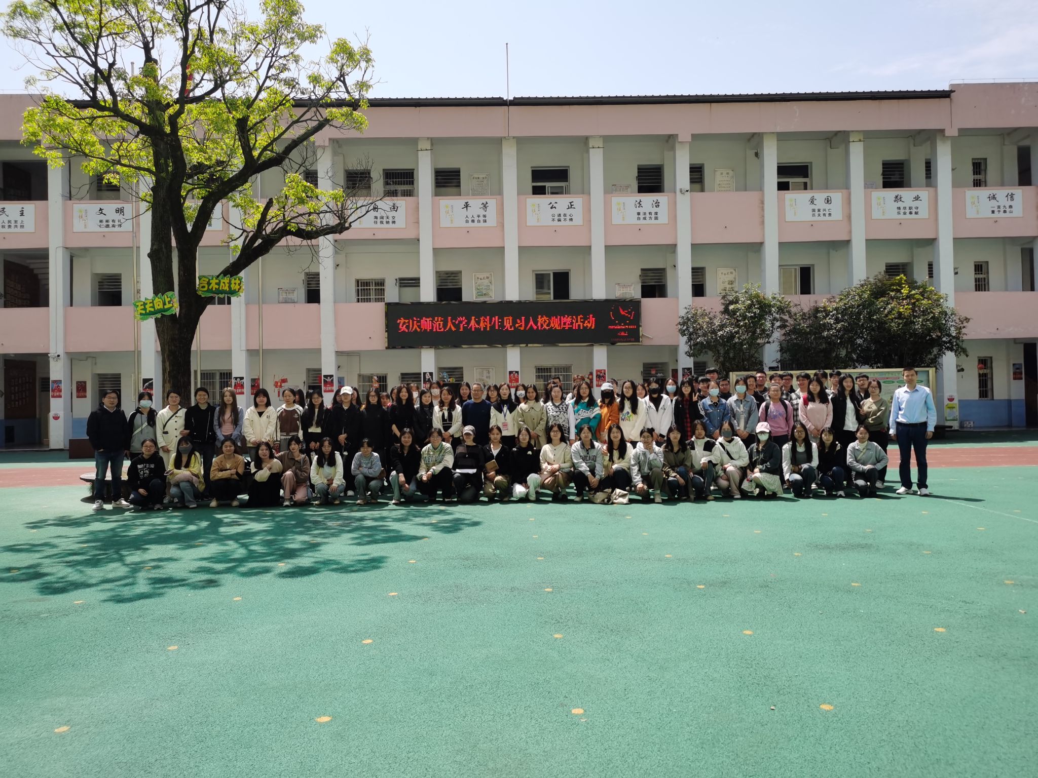 2024年4月10日,2020级小学教育专业3班、4班共110人,在陈效飞、陈举、张勇老师的带领下赴安庆市华中路第一小学开展教育见习。