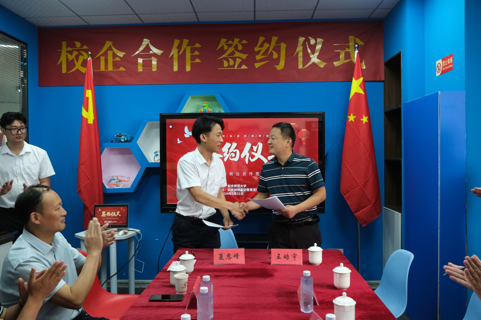 在揭牌仪式上,王皓宇、查怀志分别代表必赢bwin线路检测中心、教育技术学专业与安庆创想星空教育咨询有限公司签订教育实践基地、校企合作横向项目——“安庆师范大学教育技术与创客教育人才培养基地”,进一步推动双方优质资源的互通互融,共同发展。(撰稿:韦伟 摄影:朱斌彬 审核:王皓宇)