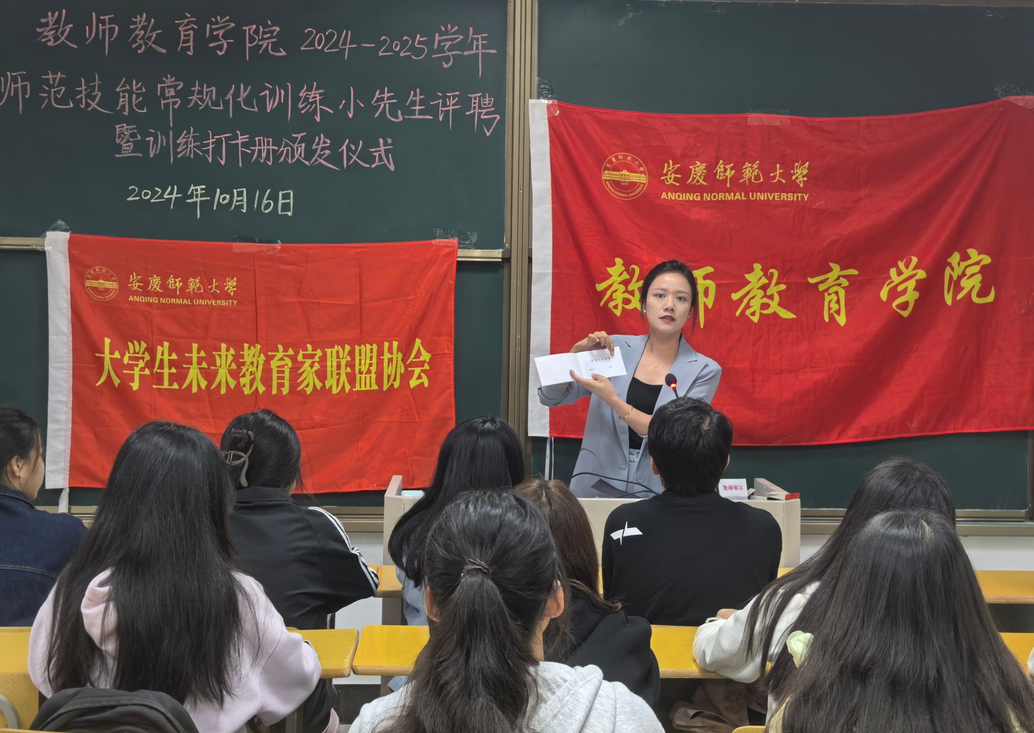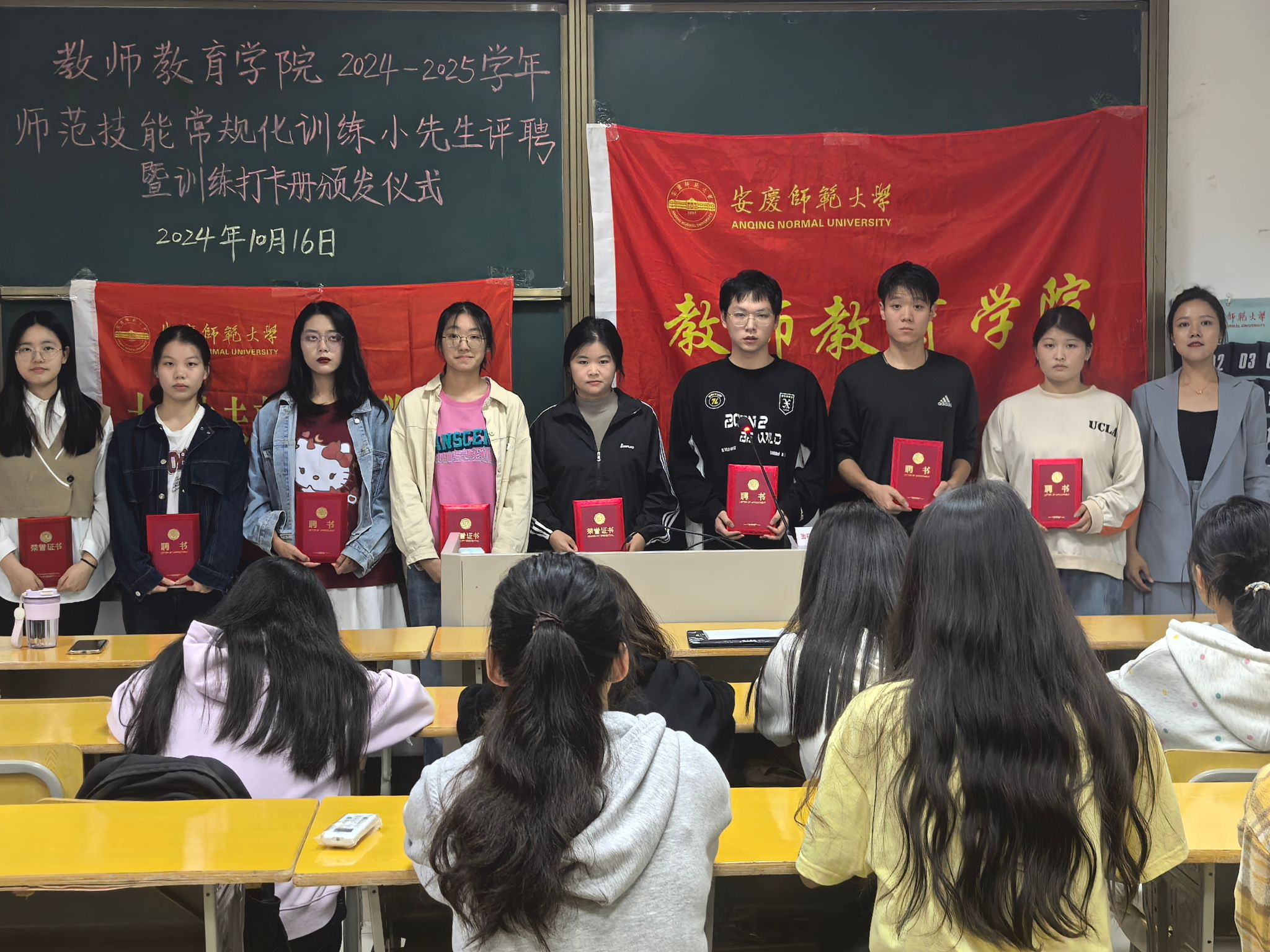 10月16日,我院于J104教室开展2024-2025学年师范生技能常态化训练“小先生”评聘暨训练打卡册颁发仪式。院党委副书记许世平、院团委副书记姚强诚、新聘任20余名“小先生”及2024级新生班委到场参加。活动由大学生未来教育家协会会长王睿主持。