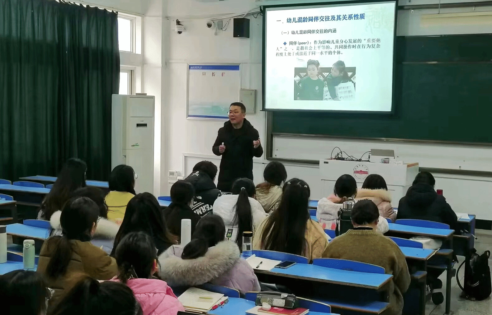 2月22日下午,安徽师范大学教育科学学院(学前教育学院)副院长、安徽省“教学名师”、“双万计划”国家一流专业(学前教育)安徽师范大学建设点负责人,博士生导师张更立教授,应邀在我院“红色园丁大讲坛”作报告,开展了题为“混龄交往活动:幼儿园不可或缺的教育组织形式”的学术讲座,学院学前教育专业全体硕士研究生、本科生及部分教师现场聆听。