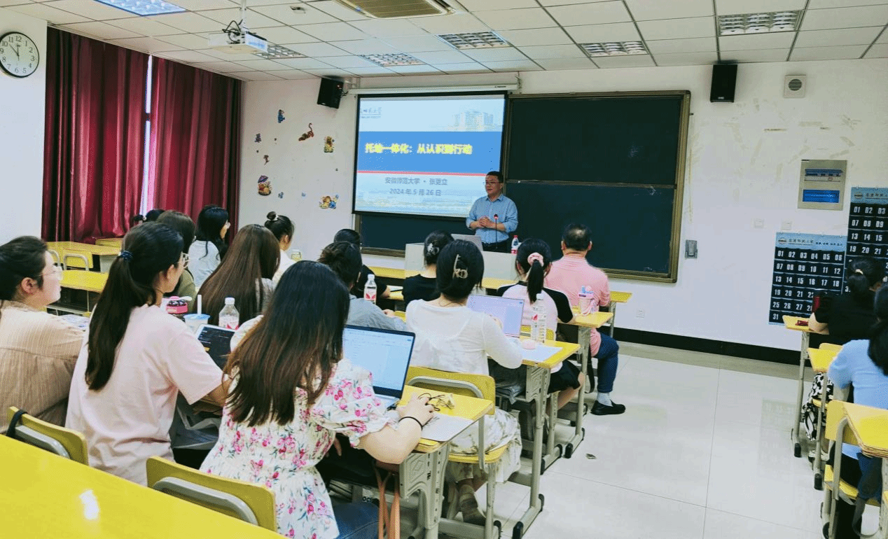 5月26日,安徽师范大学教育科学学院(学前教育学院)副院长、博士生导师张更立教授应邀做客“红色园丁大讲坛”,开展了题为“托幼一体化:从认识到行动”的学术讲座,讲座由教师教育学院高向东教授主持,该院部分教师、全体学前教育专业硕士研究生现场聆听。