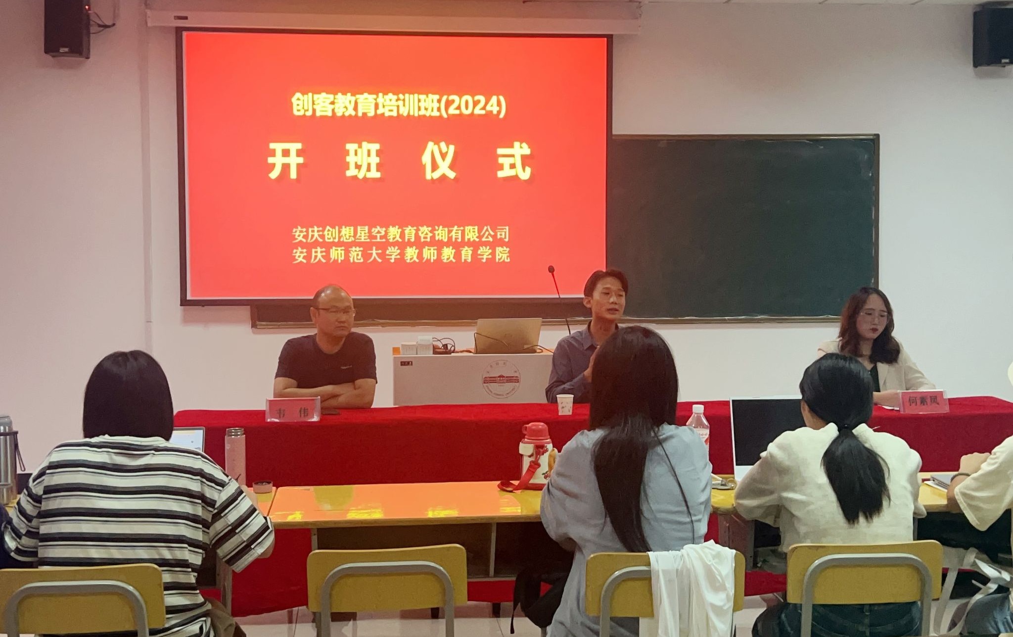 2024年9月25日,教育技术系创客教育培训(2024)开班。安庆创想星空教育咨询有限公司CEO夏恩峰、培训教师何素凤,教育技术系韦伟、朱斌彬、查怀志、万士全,以及2022级、2023级教育技术学专业学生共80余人参加开班仪式,仪式由韦伟主持。