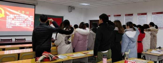 2019年1月2日下午,学生教育综合党支部在J305教室开展党日活动——党员宣誓大会。支部书记唐凤霞老师以及全体学生党员到场参加大会,会议由支部副书记刘文丽老师主持。