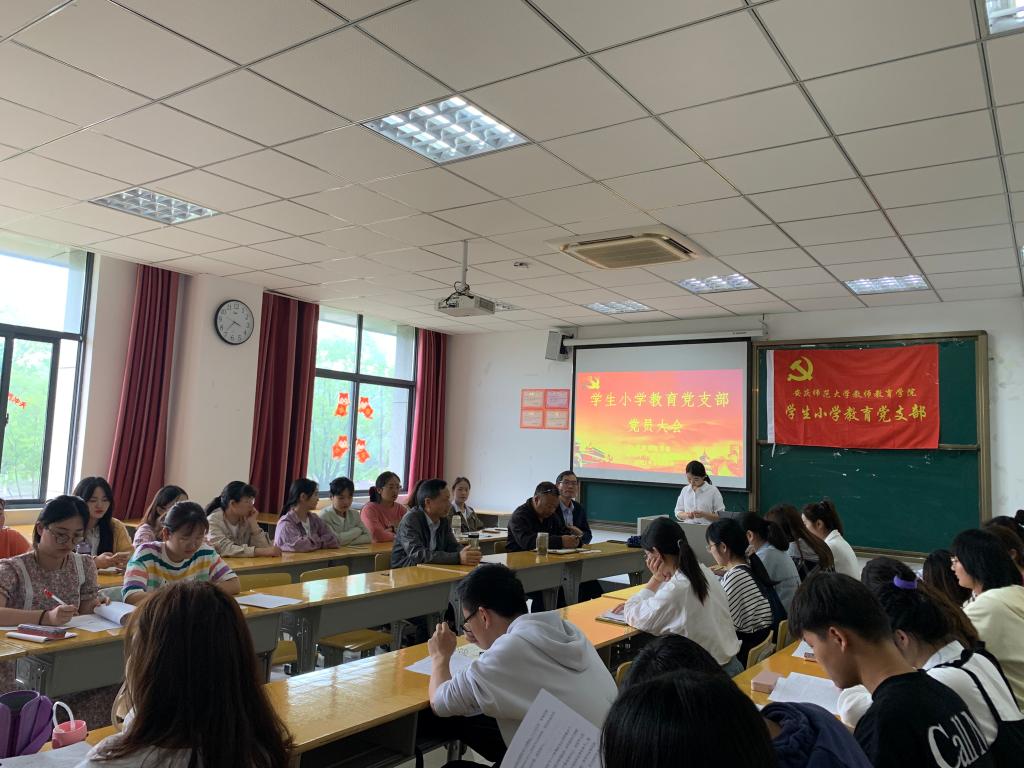 5月19日下午,学生小学教育党支部党员在J楼219教室召开支部大会,学院院长吴云助,支部书记后娇娇,入党介绍人黄兴帅韩建华、唐凤霞、方泽宇及学生小学教育专业全体党员和18名发展对象参加会议。