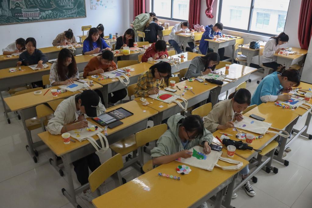 本次帆布包设计大赛以建党100周年为主题,要求大家紧密围绕党史精神,从绘画中表达自己对党史的理解,体现作为新时代新青年的进步思想。学院免费提供颜料与帆布包,绘画完成后可自行带走,吸引了一众手绘功底强的同学参与以及围观。