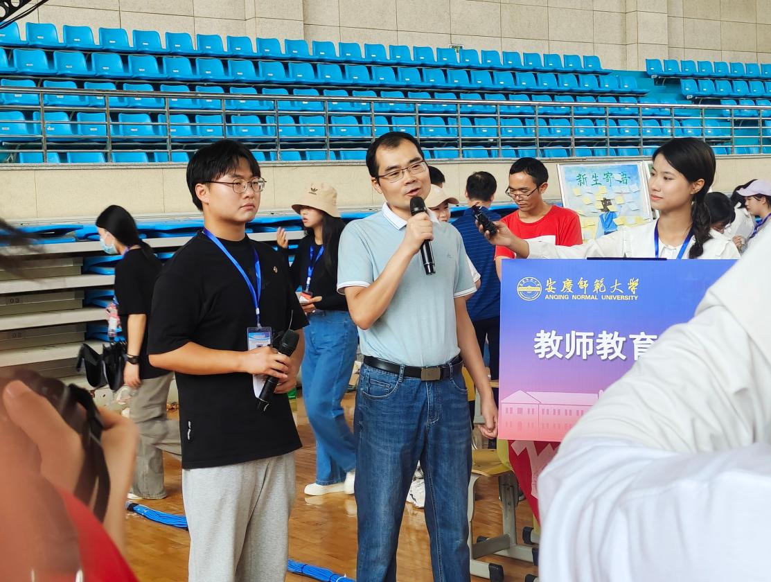 副院长陈效飞为新生介绍了学院专业的特点,并表达了对新生的希望与祝福:“希望我们的新生树立远大理想,放飞青春梦想,积极参与、多加实践,能够在理论和实践的联系上苦下功夫,为将来成为四有好老师、卓越型教师、专家型教师打下坚实的基础!”