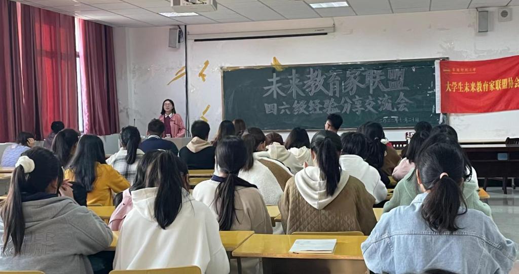 为迎接即将到来的英语四六级考试,帮助同学们提高对四六级考试的熟悉度与自信心,11月20日,我院未来教育家联盟于J305教室举行四六级经验分享会,邀请王典和李娜两位四六级成绩均为600分以上的2020级同学分享,现场近180名学生参会。