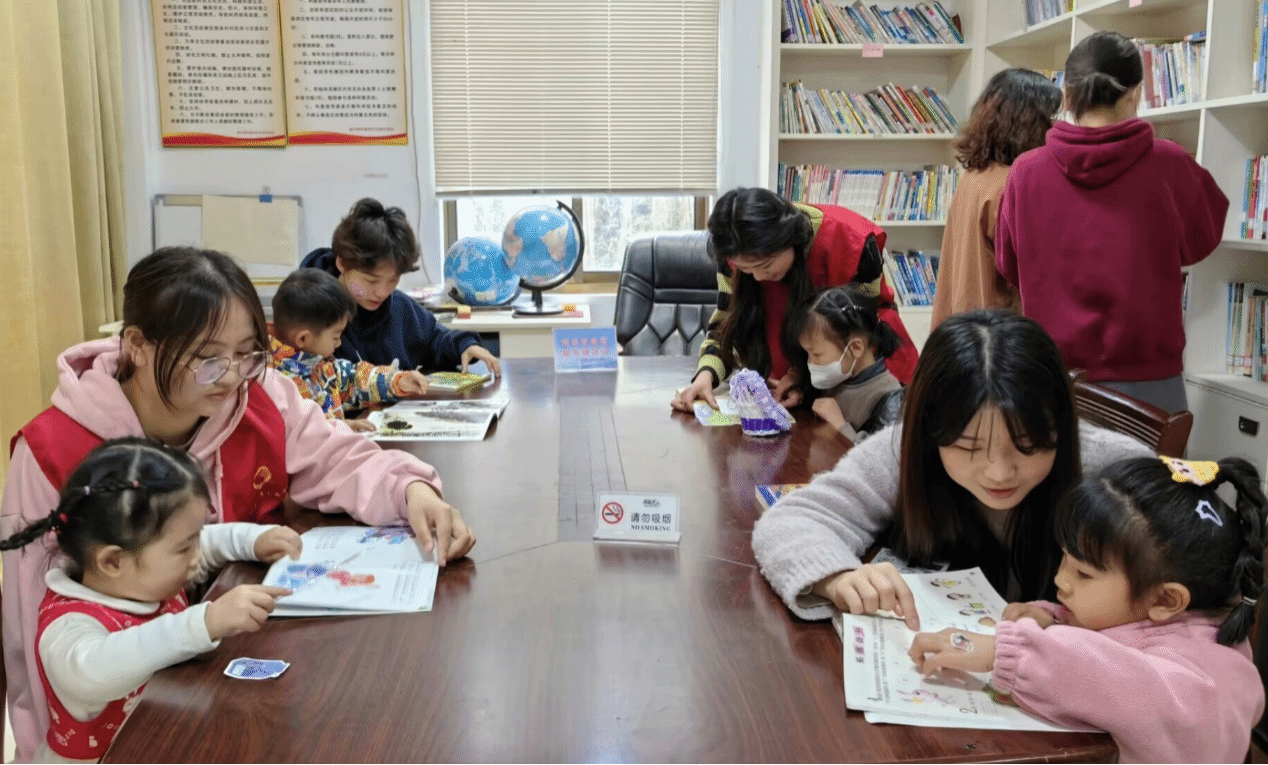 阅读队在社区的书屋开展了“书屋伴读”活动,与小朋友们一起读书,给小朋友们讲故事,以此激发孩子们的阅读兴趣。