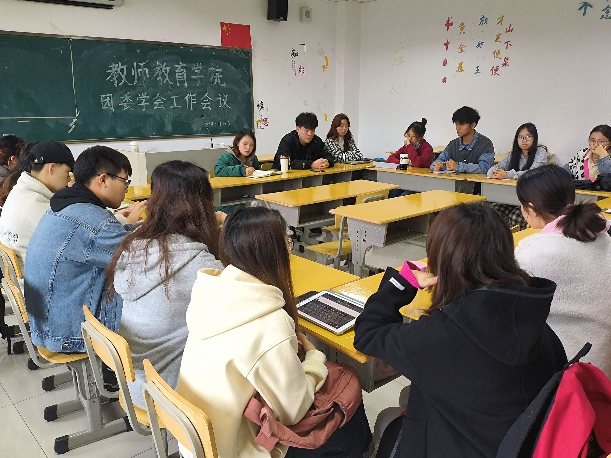 4月24日中午,院团委于J217教室召开期中学生工作交流会,会议由团委负责人姚强诚主持,团委、主席团成员和各部门负责人参会。