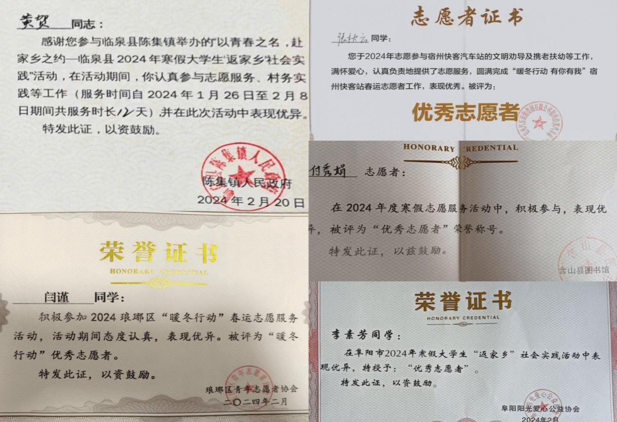 在2024年寒假期间,必赢bwin线路检测中心数十名同学积极参与了“返家乡”社会实践活动,在反哺家乡、建设家乡的过程中磨砺成长,并因其卓越的表现受到了地方社区及团组织的赞誉,荣获“优秀志愿者”荣誉称号。此次“返家乡”社会实践活动为同学们提供了一个深入了解基层、在社会大课堂中接受锻炼、增长才干、贡献力量的宝贵机会,将书本知识与群众实践进一步结合,充分展现了新时代青年的风采与力量。