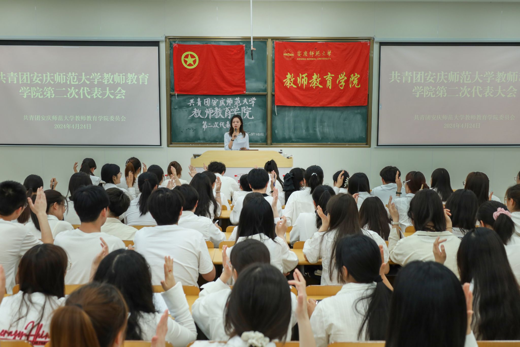在庄严肃穆的国歌声中,大会正式拉开帷幕。何孔蛟代表学院党委向大会的顺利召开表示热烈祝贺,并向各位代表及学院广大团员青年致以问候及祝愿。在致辞中,何孔蛟肯定了近年来学院团学工作取得的成效,希望广大团员青年坚定理想信念,勇担时代使命,胸怀“国之大者”,练就过硬本领,锤炼意志品质,争做有理想、敢担当、能吃苦、肯奋斗的新时代好青年,希望团学组织聚焦主责主业,始终围绕中心,服务大局,在推动学院高质量发展中贡献力量。最后,何孔蛟预祝本次大会圆满成功,祝愿广大学子学业进步,健康成长。