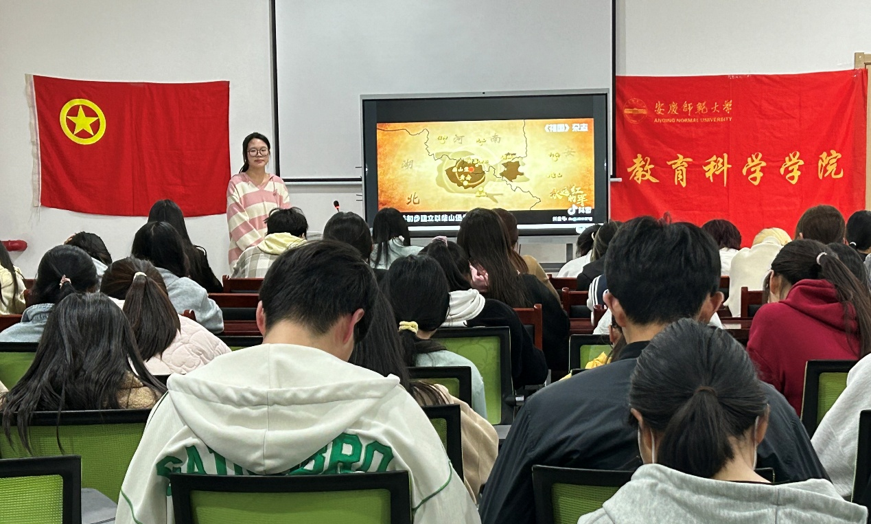 23级学前教育学专业学生胡古月介绍本次活动旨在传承红安精神,加强新时代青年思想建设。借助图文展板,讲述红安作为革命老区的光辉历史和红安精神的内涵,说明其对新时代青年“立大志、明大德”的指引作用。随后,余苏慧、王子阳与张紫涵分享研学活动的学习心得与体会。他们介绍,新时代青年肩负着时代赋予的重任,应深刻领悟红安精神的内涵,将其全方位融入日常生活中,延续红色血脉,矢志不渝地做红安精神的忠实传承者与践行者 ,让红安精神在新时代绽放耀眼光芒。