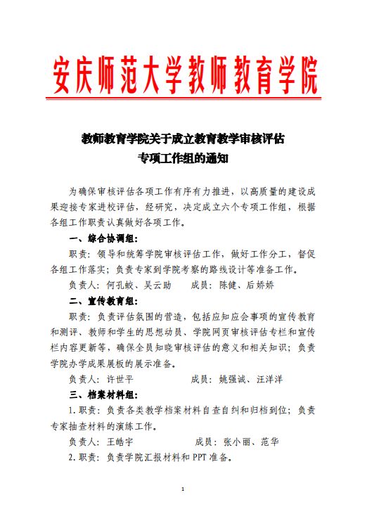 必赢bwin线路检测中心关于成立教育教学审核评估专项工作组的通知
