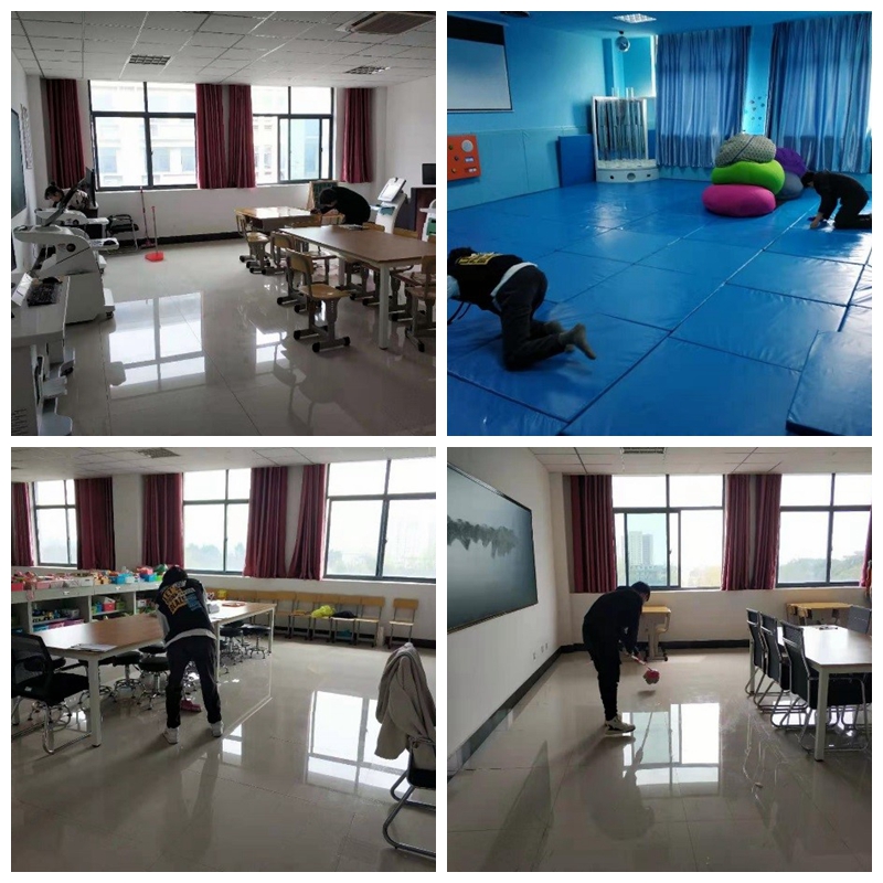 新学期伊始,为持续开展实践教学和社会服务,更好地发挥党支部的职能3月10日下午,教工特殊教育教研室党支部党员与20级特教本科学生一起对特殊教育实训室进行了大扫除。